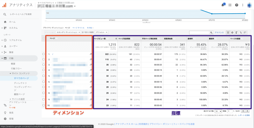 「行動>サイトコンテンツ>すべてのページ」から確認する。