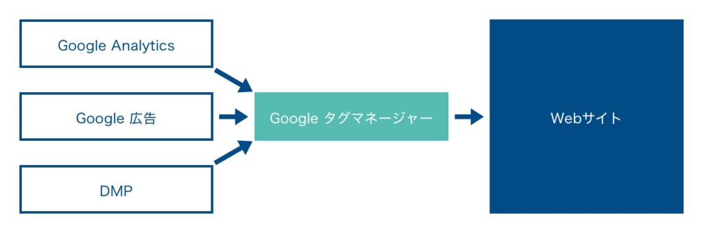 Googleタグマネージャーとは、複数のタグを一括管理するツールである。